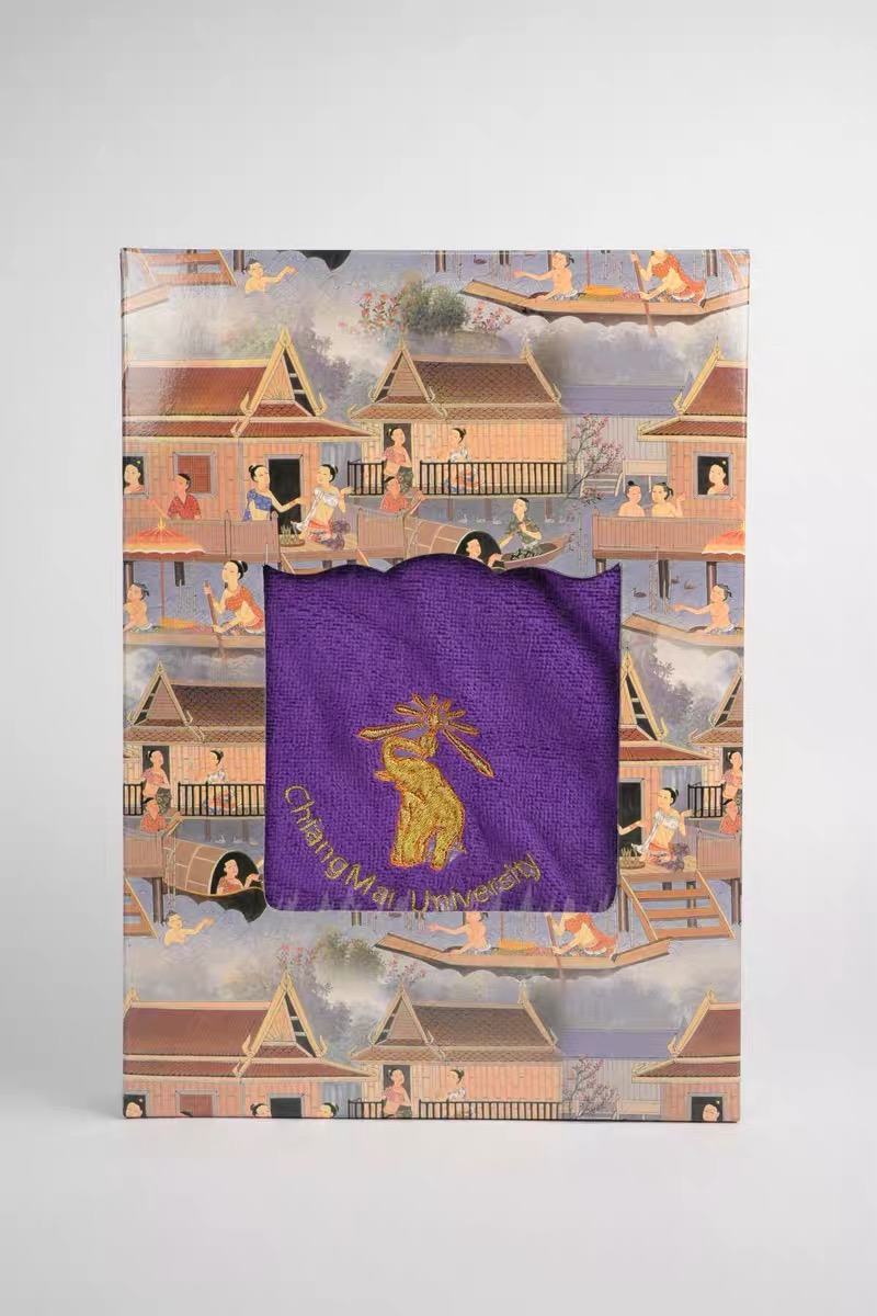 ผ้าขนหนูอาบน้ำให้สัมผัสนุ่มสบาย พิมพ์สีทองเป็นสัญลักษณ์ของมหาวิทยาลัยเชียงใหม่และสืบทอดวัฒนธรรมดั้งเดิมและความหมายแฝงทางจิตวิญญาณของมหาวิทยาลัยเชียงใหม่ การออกแบบบรรจุภัณฑ์ด้านนอกกล่องของขวัญของผ้าเช็ดตัวก็โดดเด่นมากเช่นกัน ถือเป็นภาพเล็ก ๆ ของชีวิตชาวล้านนาไทยดั้งเดิมที่เป็นที่รู้จักอย่างมาก สามารถมอบเป็นของขวัญที่หรูหราและใช้งานได้จริงให้กับเพื่อนและครอบครัว